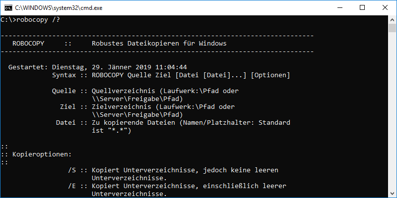 Lediglich mit robocopy hatte ich bislang noch keine Erfahrung.
