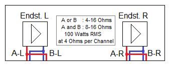 Der Verstärker hat Anschlüsse für zwei Paare und auf der Rückseite steht:"