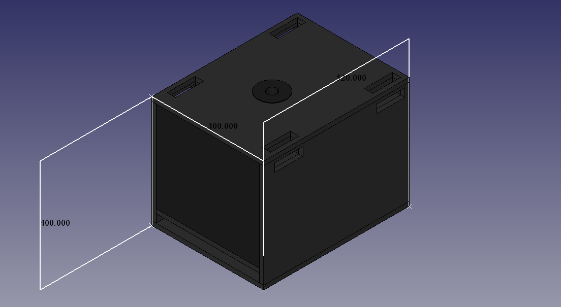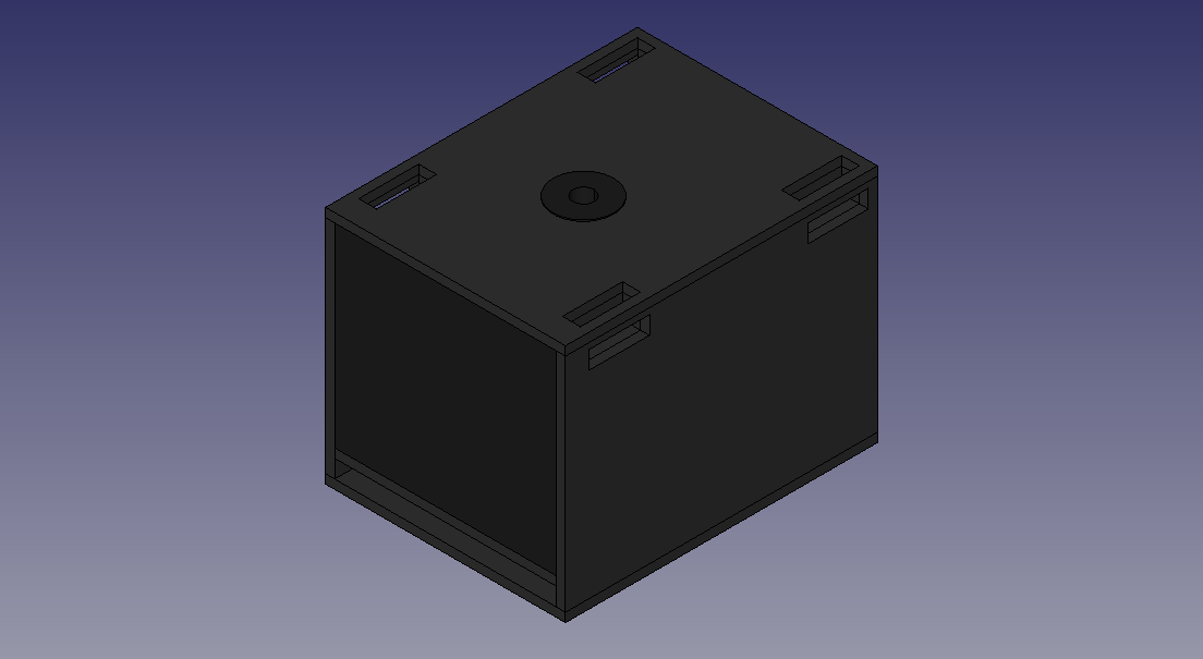 Hier habe ich ihn in ein kompaktes, eher längliches Gehäuse gesteckt und ein paar Griffe in Deckel und Seiten eingearbeitet.