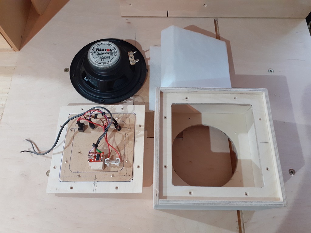 und einen kleinen PAM8403 Verstärker in einer netten, kompakten Box vereint.