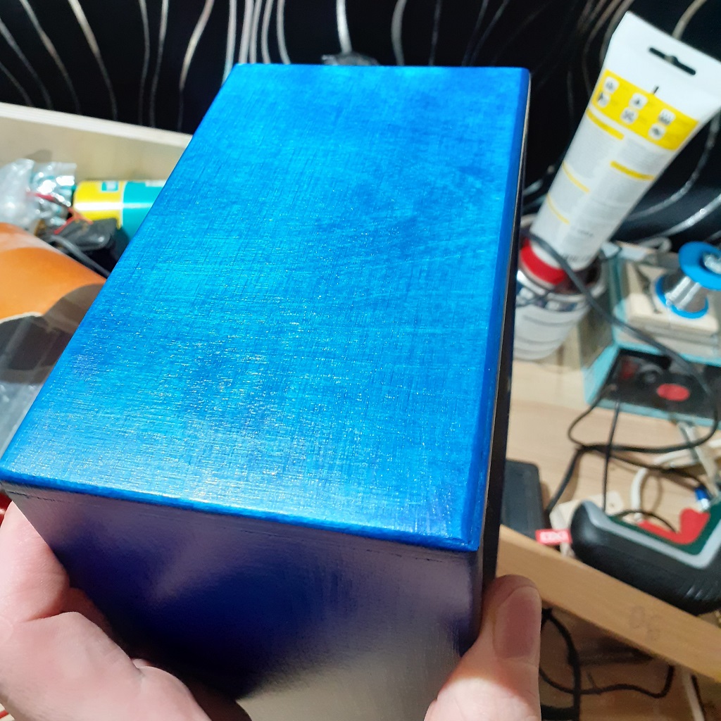 Die Lackierung basiert auf zwei Schichten CLOU Pulverbeize in blau, jeweils mit 240er Schliff.
