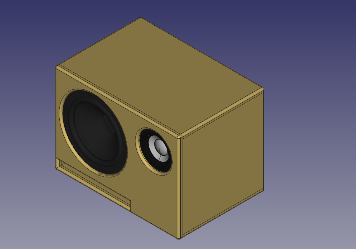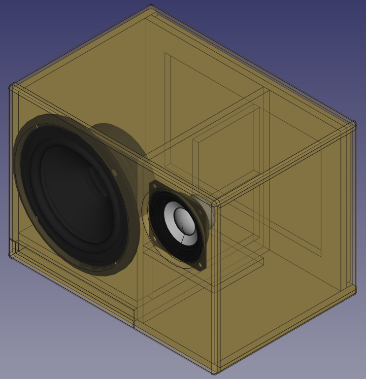 3D Modell der Box. Die Front ganzflächig ausgeführt, die Chassis sind von innen montiert.