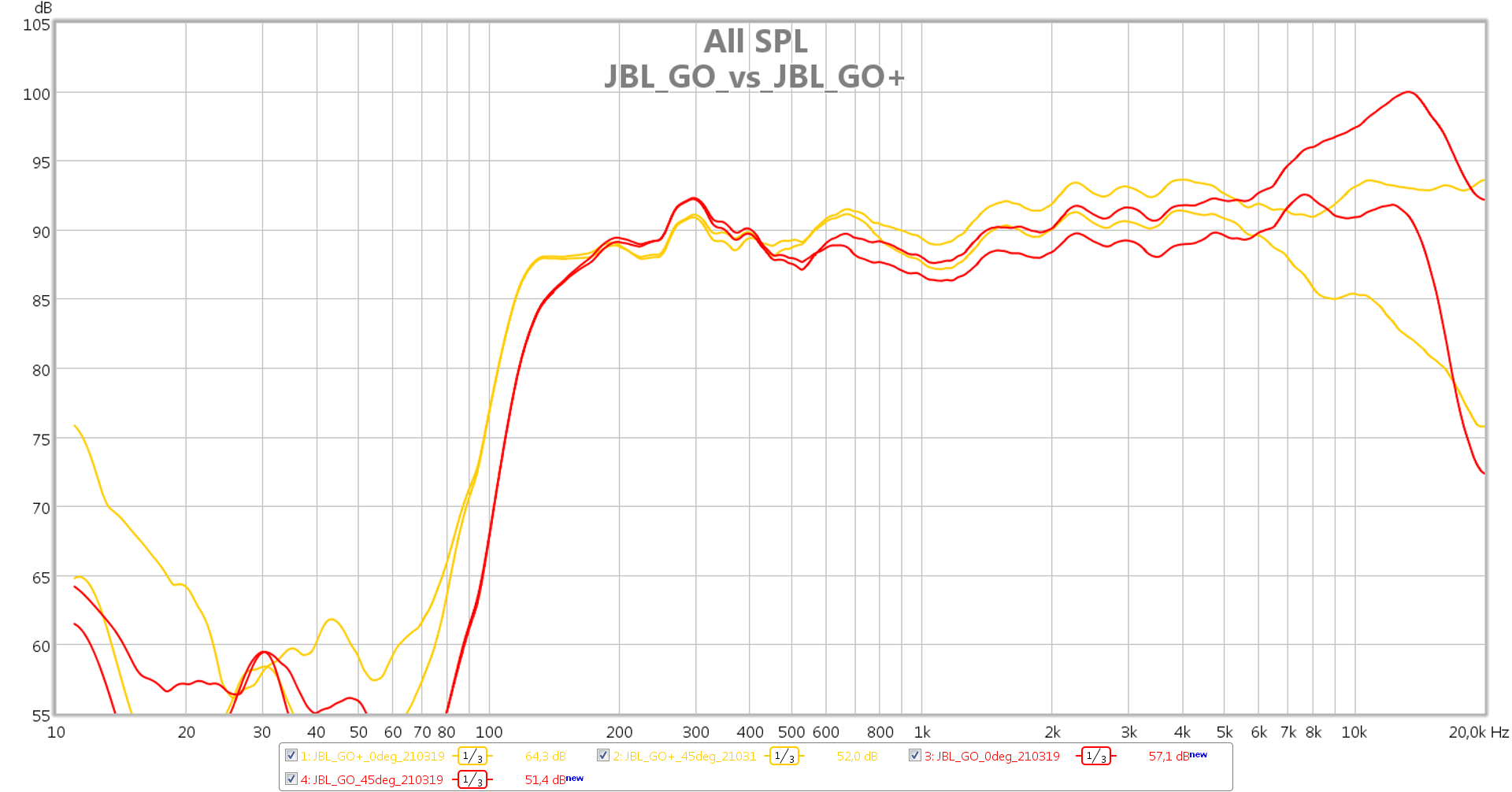 Messung JBL GO+ bei 0° und 45° (gelb)