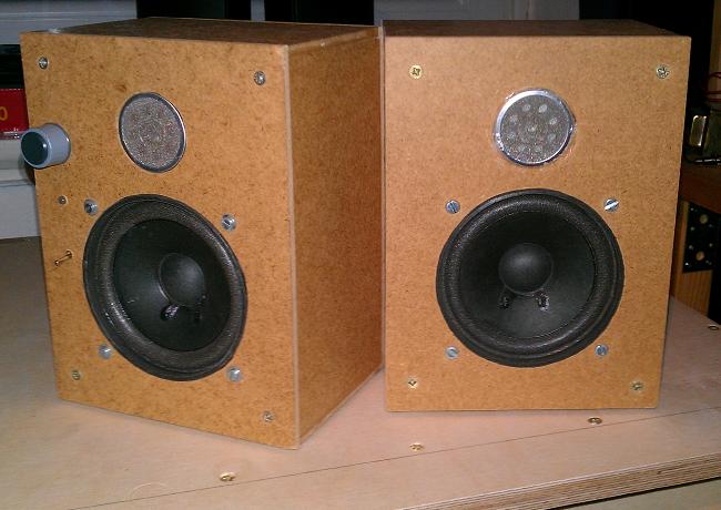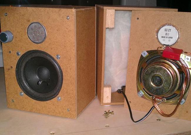 Zwei Hitachi Tiefmitteltöner und zwei Sawafuji Bändchenhochtöner sollten irgendwie zu einer Box verheiratet werden.