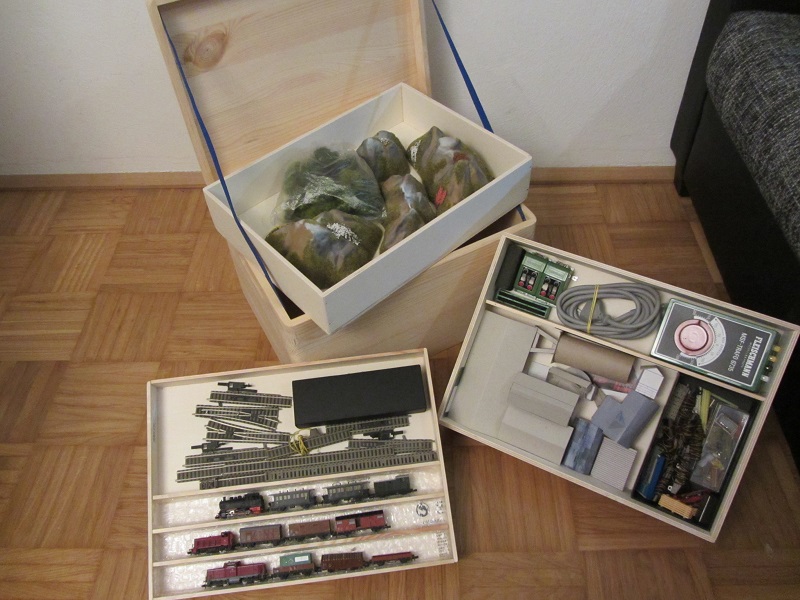 Die Modellbahn-Komponenten waren bislang nur in irgendwelchen Kartons und Kisten verstaut, das ging mir ein bisschen auf die Nerven.