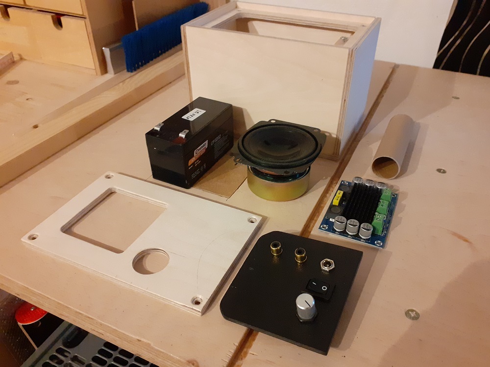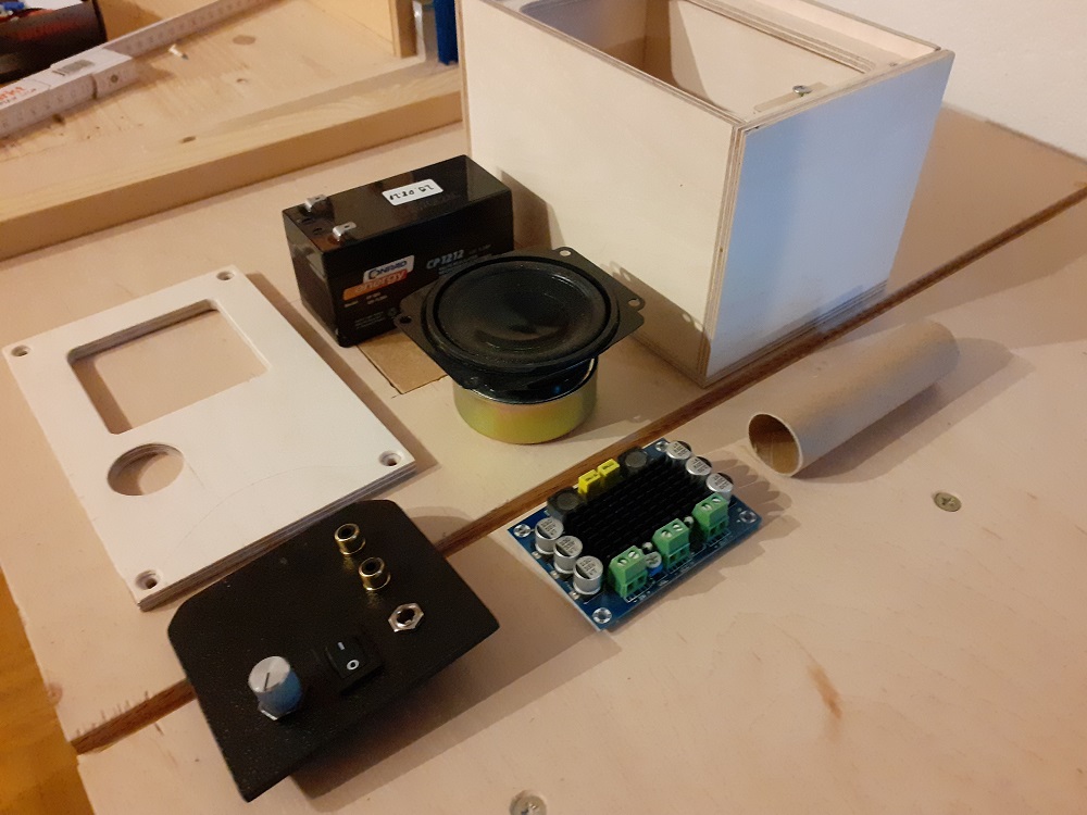 Als Verstärker wird bei dieser Box ein TPA3116D2-Board in Mono-Ausführung genutzt, welcher sein Eingangssignal über zwei Cinch-Buchsen bezieht.